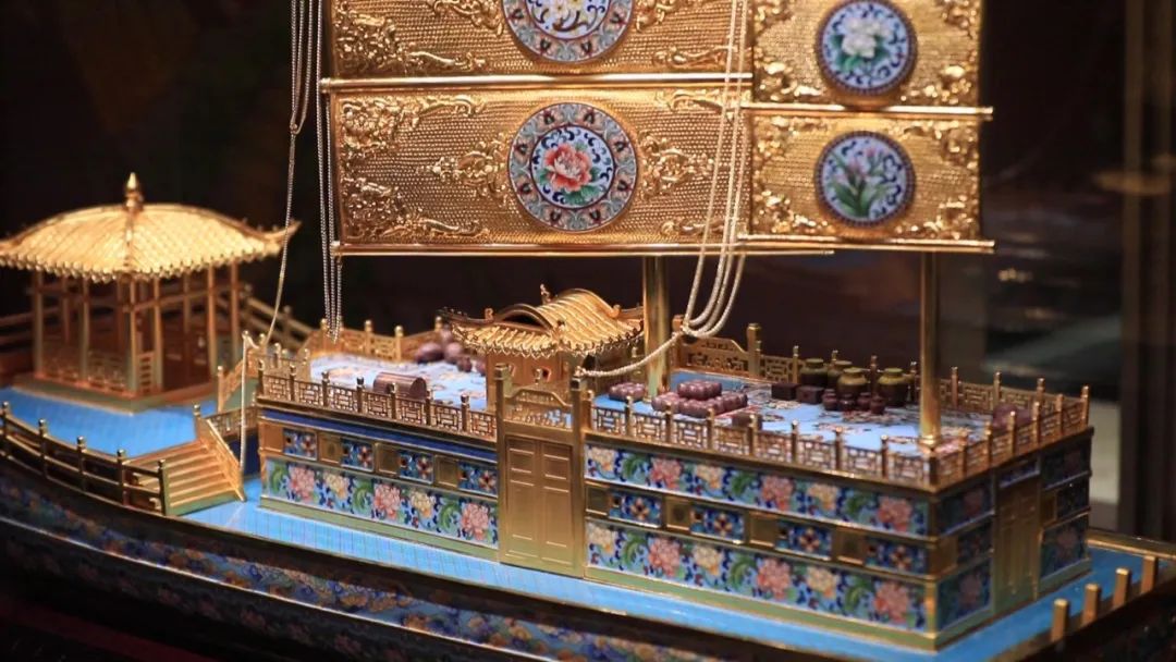 北京,不僅是六朝古都,更是大運(yùn)河的集聚地,被譽(yù)為運(yùn)河上飄來(lái)的城市。糖葫蘆、京劇戲臺(tái)、兔爺?shù)鹊?,京味十足又各具特色。館內(nèi)展示的景泰藍(lán)作品《船承大運(yùn)》,更是再現(xiàn)了運(yùn)河的繁榮景象,大氣磅礴又不乏巧思。